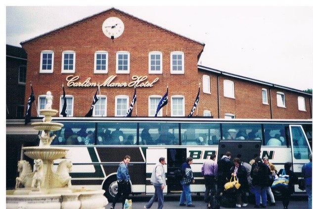 Die weiteste Vereinsfahrt war nach Corby – England. Wie kam der Rote von Rio auf Corby? Corby ist die Partnerstadt von Velbert. Der Verein ‘Corby and District Aquarist Society’ hatte 40 jähriges Jubiläum und die Stadt Cobry hatte den Aquarienverein Velbert dazu eingeladen. Da Velbert keinen Aquarienverein hatte, aber Aquarianer aus Velbert im Hattinger Verein ‘Roter von Rio’ waren, sind die Mitglieder vertretungsweise nach England gefahren. Die Mitglieder wurden im ‘Carlton Manor Hotel’ untergebracht.
